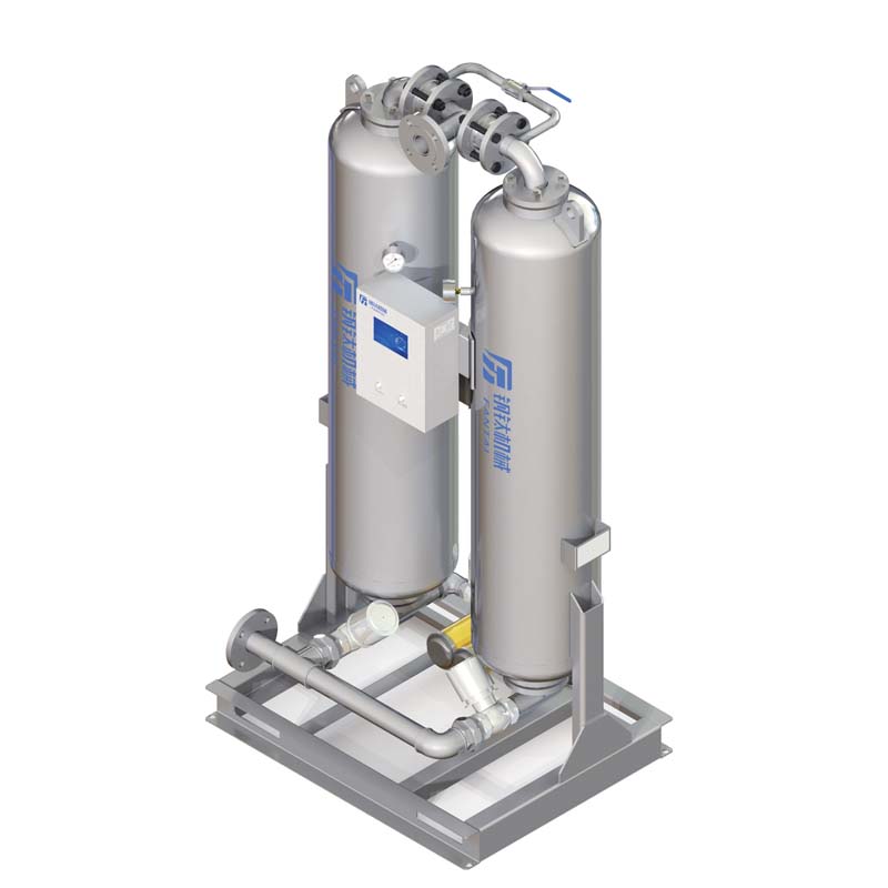 - 壓縮空氣由設(shè)備入口經(jīng)閥門(mén)控制進(jìn)入A塔吸附,得到凈化的壓縮空氣,由排氣截止閥輸出到下游用氣點(diǎn)。另由設(shè)備出口引一路干燥的壓縮空氣,經(jīng)節(jié)流閥減壓后進(jìn)入B塔,對(duì)B塔進(jìn)行再生,吹出已經(jīng)B塔吸附劑已吸附的水分。FX型無(wú)熱吸附式干燥機(jī)結(jié)構(gòu)簡(jiǎn)單,性能穩(wěn)定,可廣泛應(yīng)用于實(shí)驗(yàn)室,醫(yī)院,海洋平臺(tái)等各種要求性能穩(wěn)定、快速得到干燥壓縮空氣的場(chǎng)景。